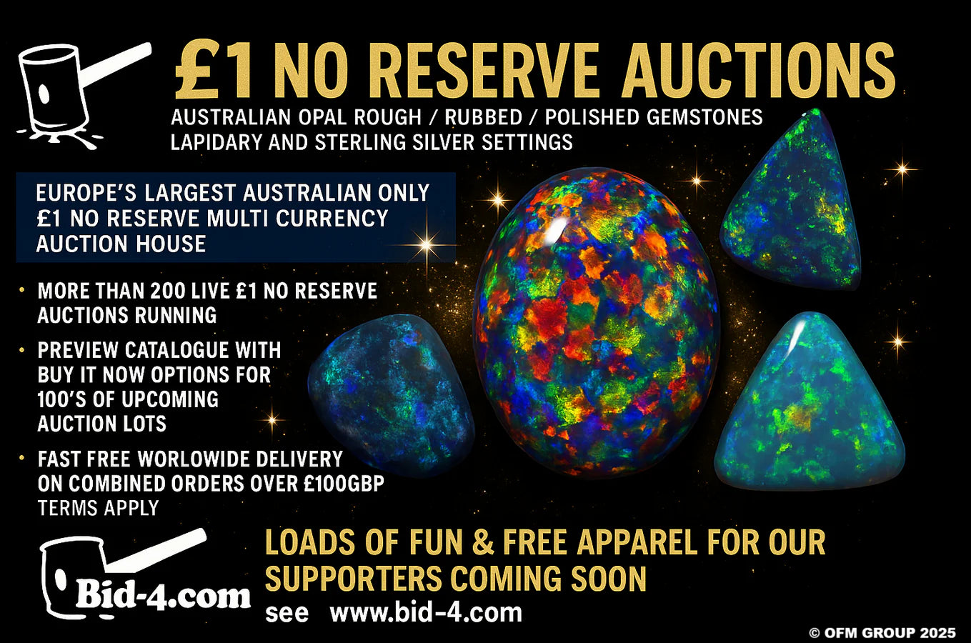 - Customer Notice our Auctions have moved to Bid-4.com. £1 no reserve auctions selling cheap cheap cheap Register now at www.bid-4.com or www.bid4opal.com