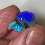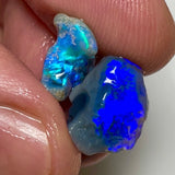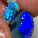 This small-sized knobby opal pair from Lightning Ridge, weighing a combined 7.45 carats, features gem-quality bright blue and green tones of fire. These opals display stunning vibrancy and are perfect for crafting high-quality gemstones or as an addition to a collector's treasure trove.