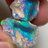 Lightning Ridge Dark Crystal base knobby opal rough Split 16.75cts Gorgeous Exotic Bright Greens & Blues to cut 17x14x10 & 11x8x5mm NSW093