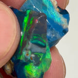Mulga Blacks Green Dominant Multifires with Oranges & Reds 26.50cts Gorgeous rough to cut & polish 22x20x6 x17x12x8mm NSW074