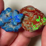 Pair of nice sized Opal formations from Lightning Ridge 42.00cts Bright Blue & Green fires 23x22x14 & 29x19x7 mm NSW047
