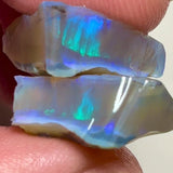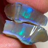 Coober Pedy Dark Crystal Seam opal rough split pair 30.00cts Green./Blue sun flashes 24x15x6mm & 20x18x5mm NSW186