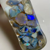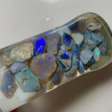 A large mixed parcel of knobby and seam opal rough from Lightning Ridge with plenty of potch and scattered colour flashes throughout. This is classic gamble material with blue being the dominant fire, and several pieces showing early hints of structure and bar development. Some clean knobby shapes and thin face options included — a good parcel for cutters who enjoy exploring and chasing colour from rough beginnings.
