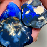 Big Blue on Black/Dark Rub rough seam opal pair 38cts L/Ridge nice Blues 30x25x5mm & 18x13x4mm NSW142