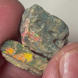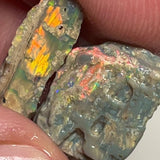 Lightning Ridge Rough Opalised Wood Fossil Rough pair 8.75cts  Orange/Yellow/Red Dominant M.fires 14x13x3mm & 17x5x3mm NSW134