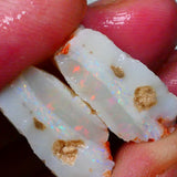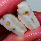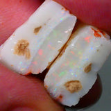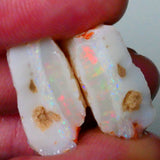 Orange/Red Dominant Coober Pedy Crystal Seam Split pair 26.00cts Thick flat Stacked bars Packed with Orange/Red Dominant Multifires 20x11x9mm & 20x10x9mm NSW116