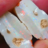 This crystal seam split pair from Coober Pedy showcases thick, flat stacked bars packed with fiery orange and red dominant multifires, making it an exceptional choice for cutting. The crystal base enhances the intensity of color, ensuring a striking play-of-fire that will stand out once polished.