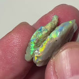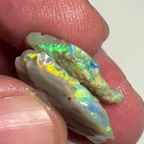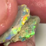Two non-matching knobby opal roughs from Allawah, totalling 15.75cts. Each piece displays highly visible bars with gorgeous bright fire — yellow, green, and orange tones dominate. Thin profiles make both stones suitable for experienced cutters looking for low-risk knobbies with colour ready to go.