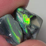 Australian Rough Mulga® Black Opal Seam pair 10cts Exotic & Stunning Cutters Gorgeous Bright Multifires & Bright bars 15x12x6mm & 12x8x6mm WSM55