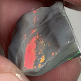 Australian Rough Opal Semi Black Seam Cutter 11.5cts High Grade Bright Lovely Reds on Tops and Second Green bar 17x14x7mm WSR56