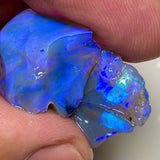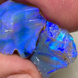 Dark Base Crystal Stunners Lightning Ridge Rough Opal 23.00cts Cutters Pair with Stunning Gorgeous Bright Blue dominant fires through out 18x15x12mm & 17x14x4mm NSW039