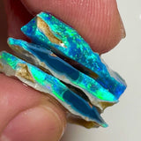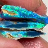 Lightning Ridge Gorgeous Seam opal rough Trio 24.75cts Gorgeous Bright Green/Blue dominant Fires to cut 24x16x4mm to 23x12x3mm NEW946