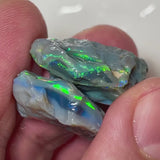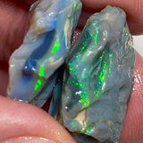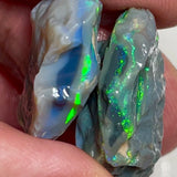 Premium Lightning Ridge black/dark knobby rough pair with highly visible colour bars and brilliant multifire action. Yellow and green dominate the exposed bars, offering strong potential from multiple angles. A top-tier parcel for cutters seeking solid colour and structure in natural form.