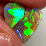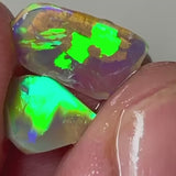 Lightning Ridge Opal Dark Crystal Base Seam pair Rough Rub 2.6cts Super Vibrant & Bright Green Dominant Multifires 13x7x2 & 9x7x4 mm WAE52