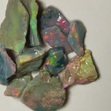 A high-impact parcel of Black and Dark opal rough from Lightning Ridge, loaded with bright multicolours ready to cut and polish. Gorgeous fire with solid potential across the lot — a great mix of clean shapes and sizes for cutters chasing serious results.