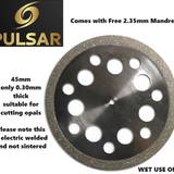 Diamond Opal Cutting wheel Slicer cutter 45mm Diameter & Only 0.3mm thick blade + 2.35mm MANDREL fit dremel & other Multitools with 2.35mm fittings
