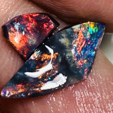 Australian Opal Rubs Pair Black Bases Rough / Rubs 2.3cts Gorgeous Exposed Faces with mostly Reds fires 18x7x2mm & 6x5x3mm WSP63