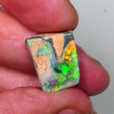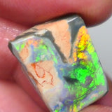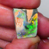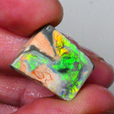Australian Rub / Rough Dark base opal 13.40cts Lightning Ridge Sharp Very Bright Green / Yellow / Orange dominant Fires 19x15x7mm NSW172