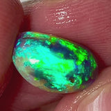 A stunning high dome pea knobby preform ready for final shaping and polish. This little gem is bursting with bright, vibrant green and yellow dominant fires, dancing across its N2–N3 black opal body tone. Ideal for collectors or cutters chasing top-tier material in small sizes. A total stunner with fantastic play-of-colour for its size.