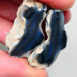 Large Sized Lightning Ridge Black Knobby opal Split pair 53.50cts Thin bars showing some blue fires to chase 28x21x12mm & 30x15x12mm NSW108