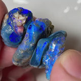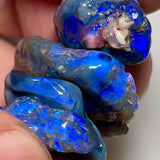 This Lightning Ridge opal rough stack features blue fire on a black base, making it an exciting lot for lapidaries and collectors. With its natural formation and deep color tones, this rough presents an excellent opportunity for cutting and polishing.