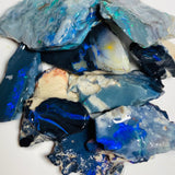 Lightning Ridge Rough Mulga® Black & Semi Black Opal Seam parcel 180cts Potential & Cutters Bright fires & bars 30x24x4mm to 24x14x7mm WSU48