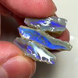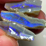 Lightning Ridge Rough Opal 20cts Stack of Dark Base Crystal Seams Bright Blues colour fires to Cut / carve & polish 22x12x5mm to 16x9x7mm 1026