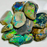 Lightning Ridge Stunning Gorgeous Bright Multi colour knobby material 41cts 15x12x4 to 8x8x5mm NEW15
