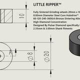 New for 2025 PULSAR DIAMOND® Fully Sintered Grinding wheels 20mm x 10mm 60-120-240-360Grit Bronze High Diamond Concentration Designed for opal LITTLE RIPPER™ Hubdrive™ M3 Screw on Grinding/Burr wheels Lapidary rotary tools carving 2.35mm or 3.00mm shanks