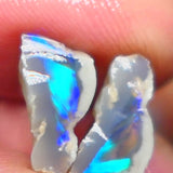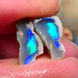 This small but high-quality Lightning Ridge knobby split features an electric super bright green, blue, and teal fire on a dark crystal (semi-black) base, making it a premium choice for cutting. With its intense play-of-color and natural split formation, this opal holds great potential for lapidaries seeking to craft a vibrant, high-end gemstone.