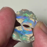 Stunning Lightning Ridge Dark Base Knobby opal rough split 16.95cts Bright Orange/blue/Green Dominant fires to cut & polish 17x10x9 & 16x10x10mm NSW149
