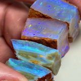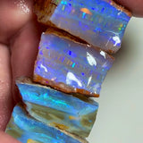 An incredible stack of gemmy Coober Pedy seam opal rough, this 113.50ct parcel is packed with thick, bright bars and vibrant blue dominant fire, accented by bursts of yellow, orange, and red throughout. With excellent cutting potential and a great spread of sizes, these pieces are a cutter's dream and ideal for producing colourful finished stones.