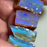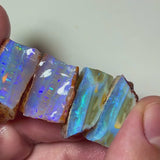Wow Huge Stack of Gemmy Coober Pedy Seam opal rough 113.50cts Thick bars loaded with Blue dominant fires Yellow/oranges/Red here to cut 20x20x10 to 20x12x7mm NEW926